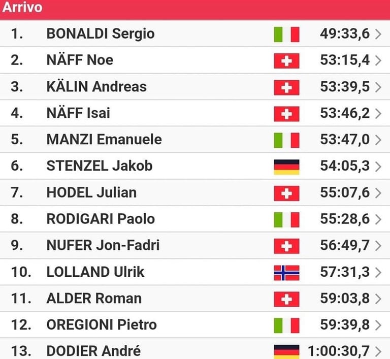In un contesto a dir poco "mozzafiato" il nostro Sergio Bonaldi vince una gara tutta in salita mettendo in mostra tutte le sue doti di gran scalatore! Bella divertente partendo direttamente dal lago di Saint Moritz. Complimenti anche ad un'organizzazzione davvero impeccabile